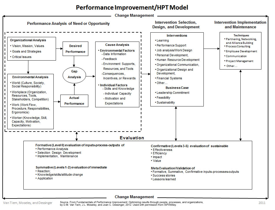 In analyzing a performance situation, I usually follow the HPT model, developed by the ISPI (International Society for Performance Improvement, www.ispi.org).